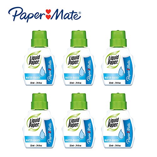 6 Bottles Paper Mate Liquid Paper Correction Fluid Water Base Low Odor Non-Toxic