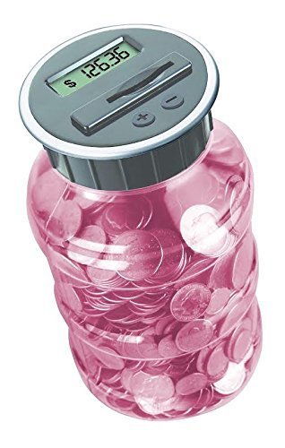 Digital Coin Bank Savings Jar - Automatic Coin Counter Totals All U.S. Coins Including Dollars and Half Dollars - Original Style, Transparent Pink Jar