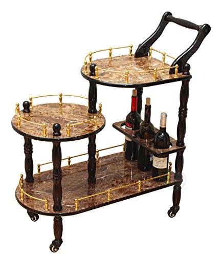 Uniquewise(TM) 3-Tier Serving Tea Cart, Gold Marble Finish