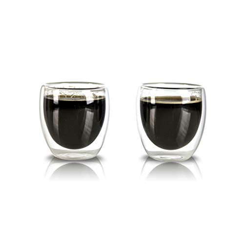 Coffee Espresso Cup Set Of 2 by VizCása - Tumbler Cups Double-Wall Insulated, 2.5 Ounce Glass Espresso Shot - Heat Proof Keeps Beverages Hot