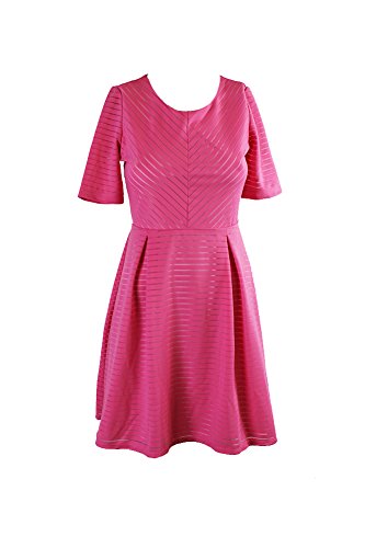 NY Collection Women's Petite Solid Elbow Sleeve Scoop Neck Fit and Flare Dress, Azalea Pink, Medium