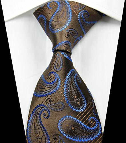 EXT Collectino 100% Silk Necktie, New Classic Paisley Dark Brown Blue Formal Tie JACQUARD WOVEN Men's Suits Wedding Party Ties
