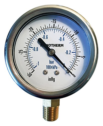 MANOTHERM 131-25L-30VP/Kpa Industrial Pressure Gauges, Glycerin Filled/Refillable, Bottom Mount St Case, Crimped Bezel