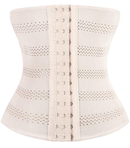 Everbellus Women's Breathable Elastic Corset Waist Trainer Cincher Belt Shapewear (Medium, Beige)