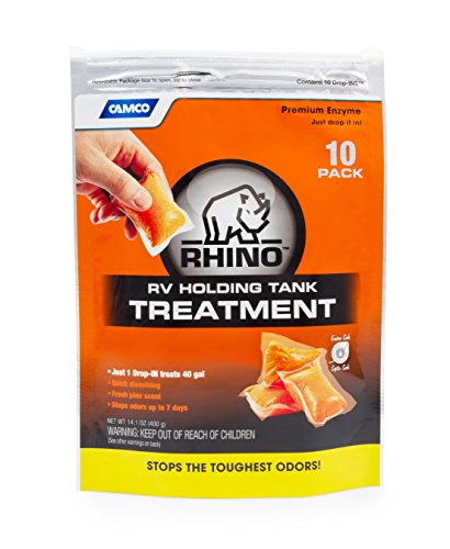 Camco 41519 Rhino Heavy Duty Holding Tank Treatment -Eliminates Tough Odors in Your RV Tote Tank for Up to 7 Days and Digests Waste and Tissue - Pine Scent , 10 Pack