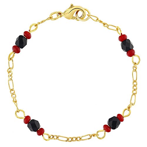 In Season Jewelry 18k Gold Plated Evil Eye Protection Simulated Azabache Bracelet Link Amulet 5.5"