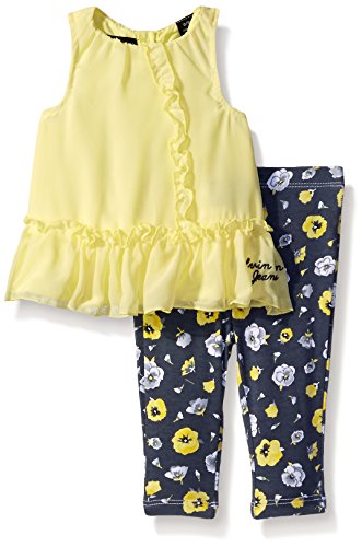 Calvin Klein Baby-Girls Chiffon with Jersey Lining Yellow and Printed Leggings, Yellow, 6-9 Months