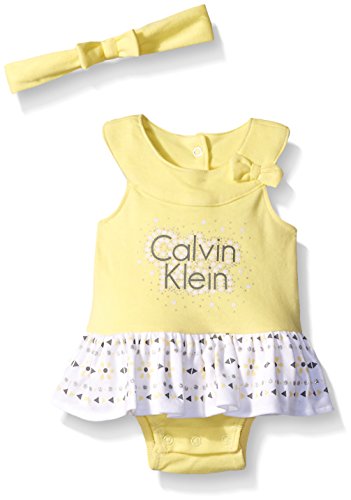 Calvin Klein Baby Girls' Combed Interlock Sunsuit with Headband, Yellow, 6-9 Months