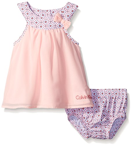 Calvin Klein Baby-Girls Pink Poplin with Chiffon Overlay and Panty, Pink, 3-6 Months