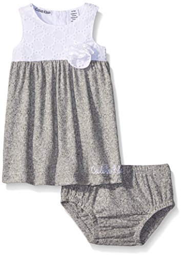 Calvin Klein Baby Girls' Marled Heathered French Terry Dress and Panty, Gray, 18 Months