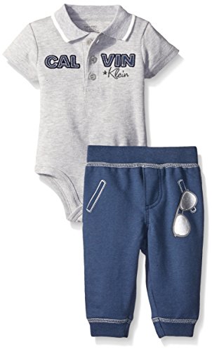 Calvin Klein Baby-Boys Bodysuit and French Terry Pants, Navy, 3-6 Months
