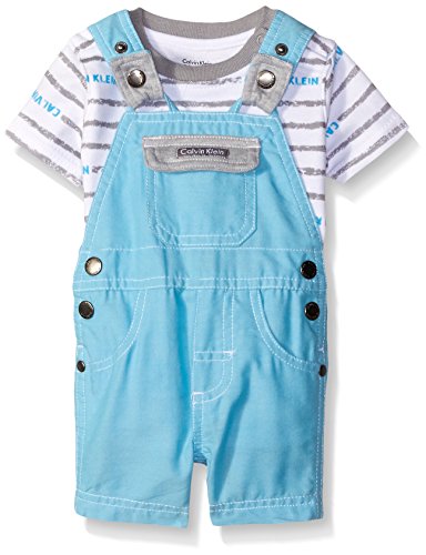 Calvin Klein Baby-Boys Printed Interlock Top and Shortall, Blue, 24 Months