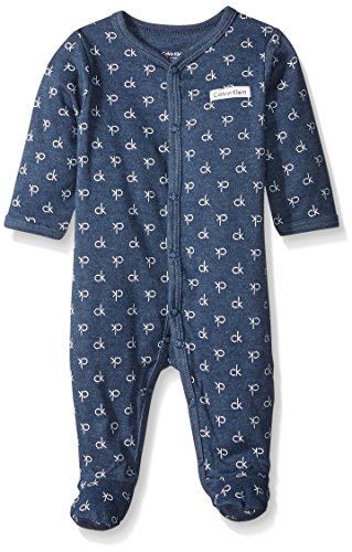 Calvin Klein Baby Boys' Printed Logo Sleeper, Navy, 6-9 Months