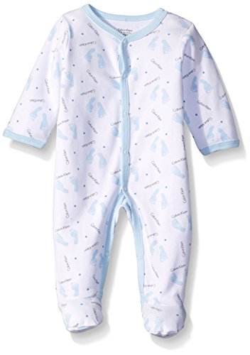 Calvin Klein Baby Boys' Footprint Sleeper, Blue, 0-3 Months