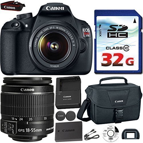 Canon EOS Rebel T5 DSLR 18mp + EF-S 18-55mm IS Bundle (8 items)