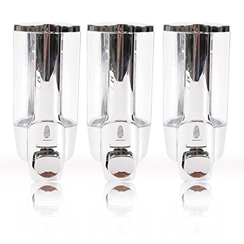 CoZroom Three Chamber Wall Mount Clear Shower Soap Shampoo Dispenser, Chrome