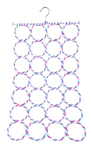 ChezMax Yarn Scarf Hanger with Hooks 28-Circle Scarf Hanger Tie Rack Multifunctional Hanger for Scarf and Tie Scarf Organizers Blue/Rose Red