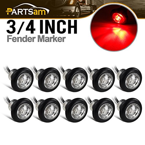Partsam 10x 3/4" Mini Round Red Led Side Marker Lights Grommet Mount w Plug Connectors Waterproof Sealed Boat Trailer Truck RV Bus Van Bullet Side Led Marker Lights Lamps Clear Lens 12V