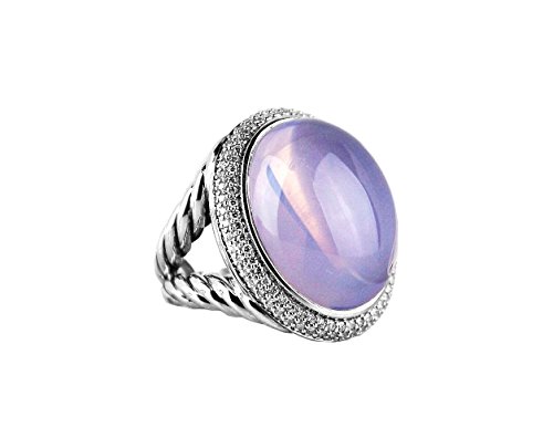 David Yurman Lilac Quartz Pave Diamond XL ST.Silver Split Shank Oval Ring Size 7