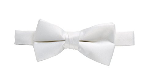 Sportoli Kids and Baby Adjustable Solid Color Banded Satin Pre-tied Tux Bow Tie - White