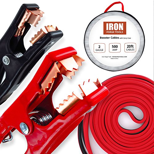 Iron Forge Tools 20 Foot Jumper Cables with Carry Bag - 6 Gauge, 400 AMP Booster Cable Kit