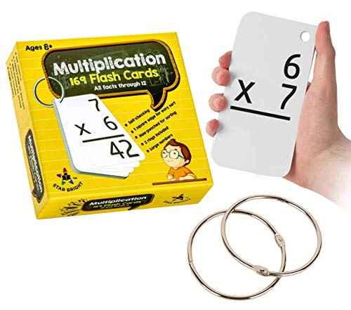 Star Right Education Multiplication Flash Cards, 0-12 (All Facts, 169 Cards) with 2 Rings