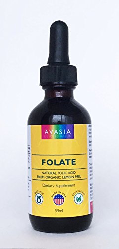 AVASIA Organic Folate - Vitamin B9. Completely Natural Folic Acid. Liquid Folate 800 mcg from Organic Lemons. Made In The USA. 2-4 month supply