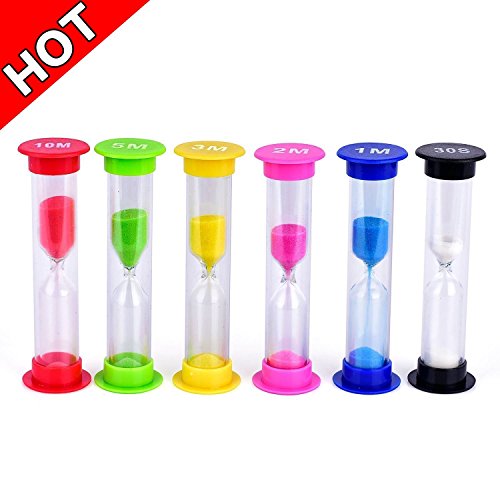 senbowe Sand Timer trade; 6 Pack Colorful Sandglass Hourglass Sand Clock Timer/- 30sec/1min/2mins/3mins/5mins/10mins for Kids,Classroom, Kitchen,Games -Great Gift for Your Children