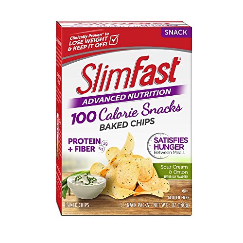 SlimFast Advanced Nutrition 100 Calorie Snacks, Baked Chips, Sour Cream & Onion, 1 oz. Bag (Pack of 5)