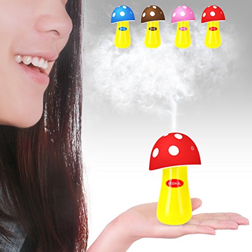 dizauL Ultrasonic Cool Mist Humidifier, Mushroom Humidifier 200ml for Skin moisturing,Stealth mask with No Noise,Waterless Auto Off,LED Lights,Portable for Baby Room,Bedroom,Office,Spa,Yoga,Car(Red)