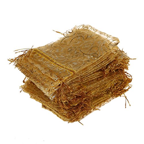 Tojwi 100pcs Organza Bags 3.5"x4.3"(9x11cm) Champagne Eyelash Pattern Drawstring Pouches Jewelry Party Wedding Favor Gifts Bags