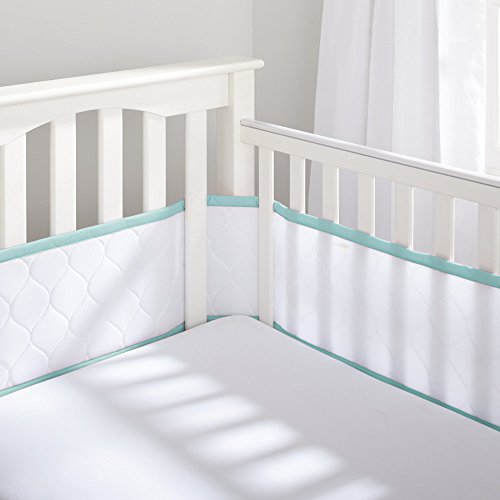 BreathableBaby Deluxe Embossed Mesh Crib Liner, White/Seafoam
