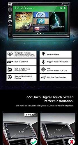 Generic G2112U 6.95 inch Double 2 DIN Car DVD Player Radio Stereo GPS SAT NAV Bluetooth Touch Screen MP3/USB/SD/CD Player (US-Canada Map included)