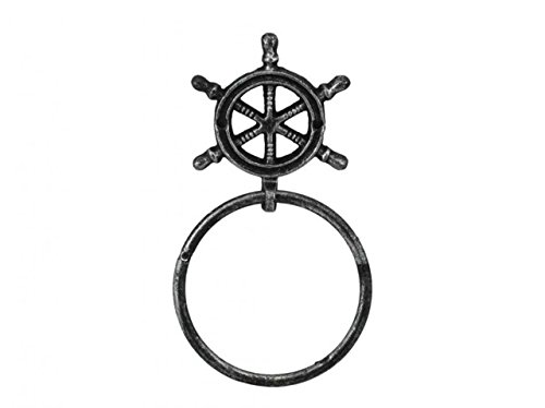 Antique Silver Cast Iron Ship Wheel Towel Holder 8.5 Inch - Ships Wheel Decoration - Metal Wall Art