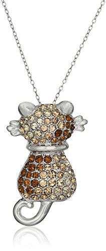 Sterling Silver Brown Cat Pendant Necklace Made with Swarovski Crystal (18")