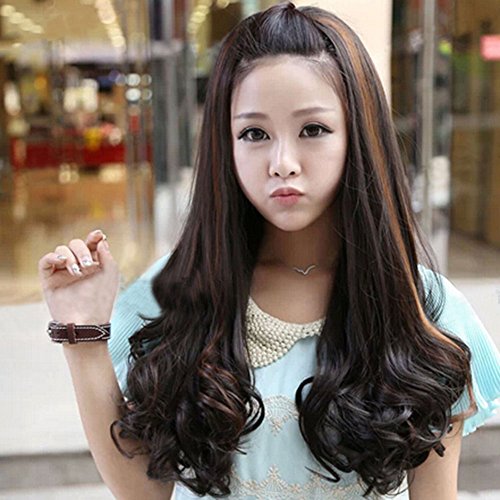 Spritech(TM) New Stylish Deep Brown Fluffy Realistic Half Head Wig Long Wavy Curly Hair Wig Fiber Synthetic Women Wig