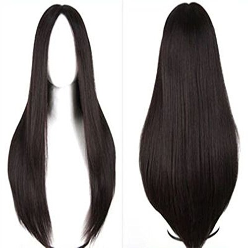 Spritech(TM Fluffy Realistic Black Wig Long Straight Hair Wig Fiber Synthetic Women Wig with Simulation Scalp