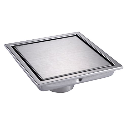 HANEBATH 6 Inch Square Shower Floor Drain with Tile Insert Grate,Brushed