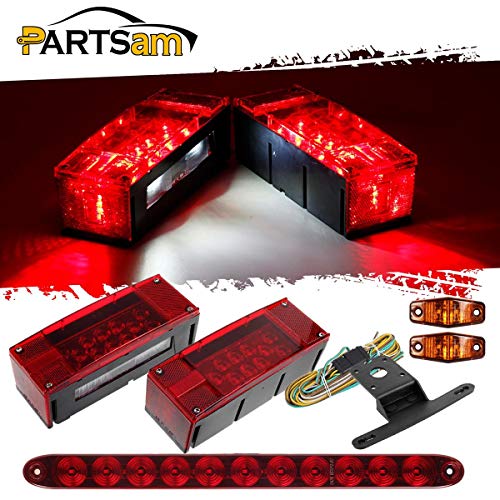 Partsam 12V Waterproof LED RV Truck Trailer Light Kit,2xRed Rectangle LED Stop Turn Tail License Brake Lights w/Wire Harness& Bracket+2xAmber Side Marker+Red Third Brake Light Bar