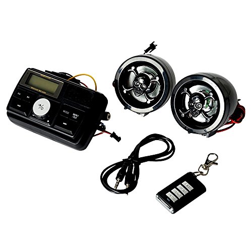 XYZCTEM ALL-NEW Waterproof Motorcycle Handlebar Speakers| FM Radio System & MP3 Player W/U-disk & SD Card Reading Capability| Remote Control Anti-Theft Police Guard-Alarm| Cool Skull Logo