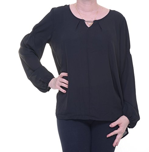 NY Collection Women's Solid Long-Sleeve Blouse with Pleating, Black, Large