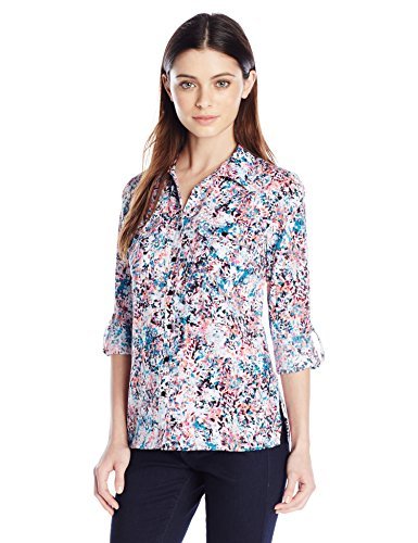 Notations Women's Petite Printed Long-Sleeve Blouse, Coral Autumn, Medium