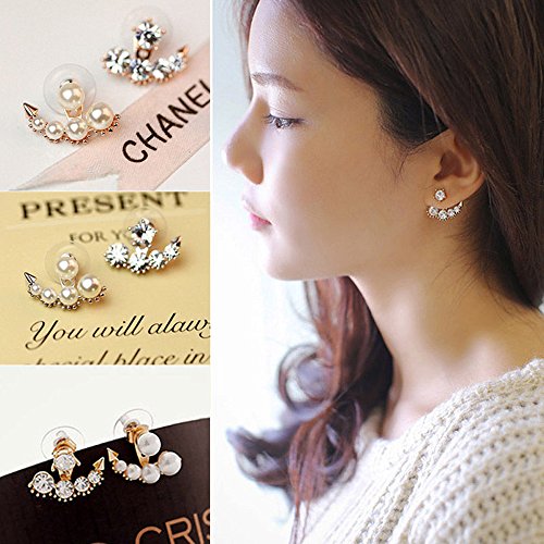 Yosoo Super Cute Girly 2 Pair Mini Pearl Crystal Rhinestone Front and Back Ear Cuff Ear Clips Stud Earring Set