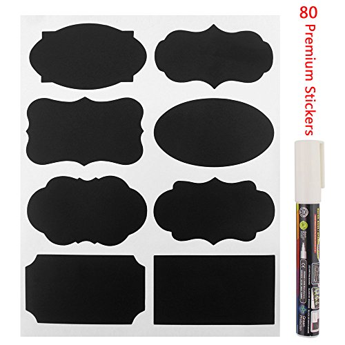 Chalkboard Labels - Yukiss@ 80 Premium Reusable Chalk Stickers for Jars + White Chalk Marker with 6mm Reversible Tip - (Mini Size for Tins, Bottles and any Storage, Best Even for Your Home and Office)
