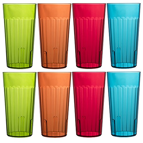 Bellevue 20-ounce Break-resistant Plastic Restaurant-quality Beverage Tumblers | Set of 16 in 4 Assorted Colors