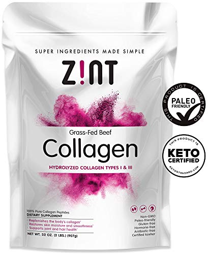 Zint Collagen Peptides Powder (32 oz): Paleo-Friendly, Keto-Certified, Premium Hydrolyzed Collagen Protein Supplement - Unflavored, Grass Fed, Non GMO