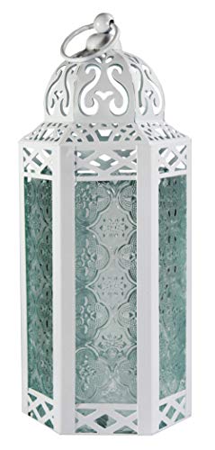 Vela Lanterns Moroccan Style Candle Lantern, Medium, Clear Glass, White
