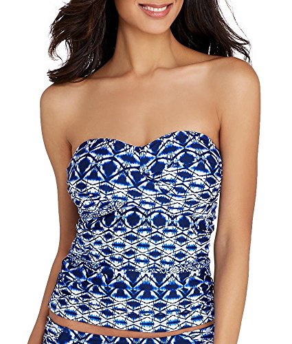 La Blanca Women's Delux Bra Cup Bandeau Tankini Swimsuit Top, Navy/White/Tangier Print, 34D