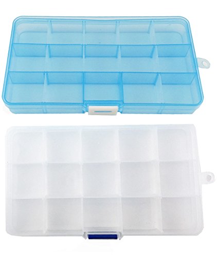 yueton Mini 15 Grid Adjustable Jewelry Bead Organizer Box Storage Container Case (Pack of 2?