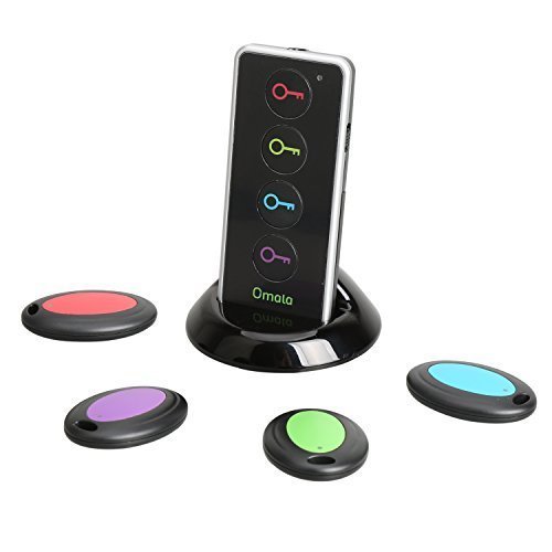 Omala Wireless Rf Item Locator Key Finder with Base Support and LED Flashlight, Pet, Cell, Wireless Rf Remote Item, Wallet Locator.(1 Rf Transmitter and 4 Receivers) (Black)